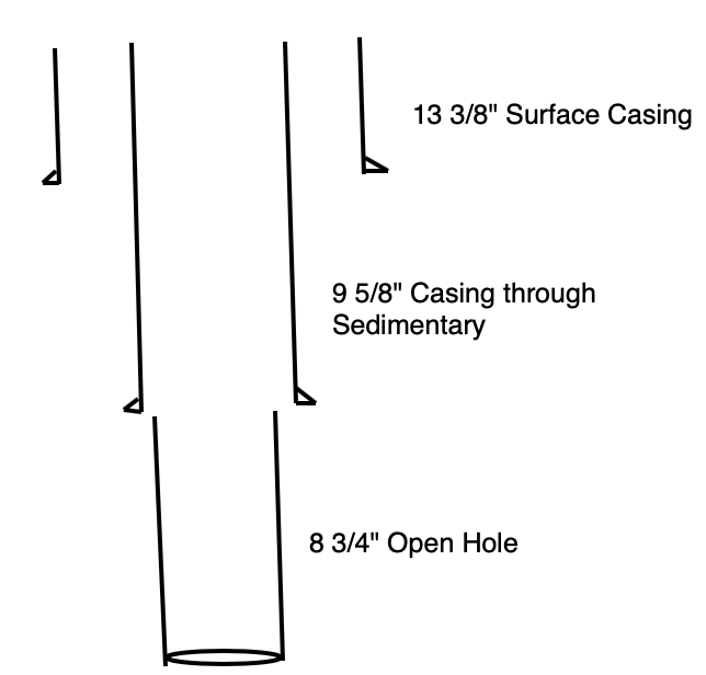 - $100/ft for drilling, casing, and cementing sedimentary rock 100' into granite basement.